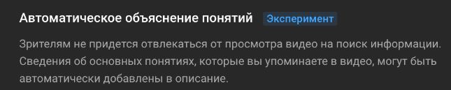 Там же, но ниже, имеется другой интересный пункт: «Автоматическая разбивка на эпизоды». Скажем честно, искусственный интеллект Youtube не настолько хорош, чтобы без вашей помощи разделять ролик на отдельные части (для удобства просмотра и поиска), поэтому делать это вам лучше самостоятельно. Для этого переходим чуть выше, в описание, и вручную вводим данные по формату: «0:00 Приветствие, 3:00 История, 7:00 Конец».