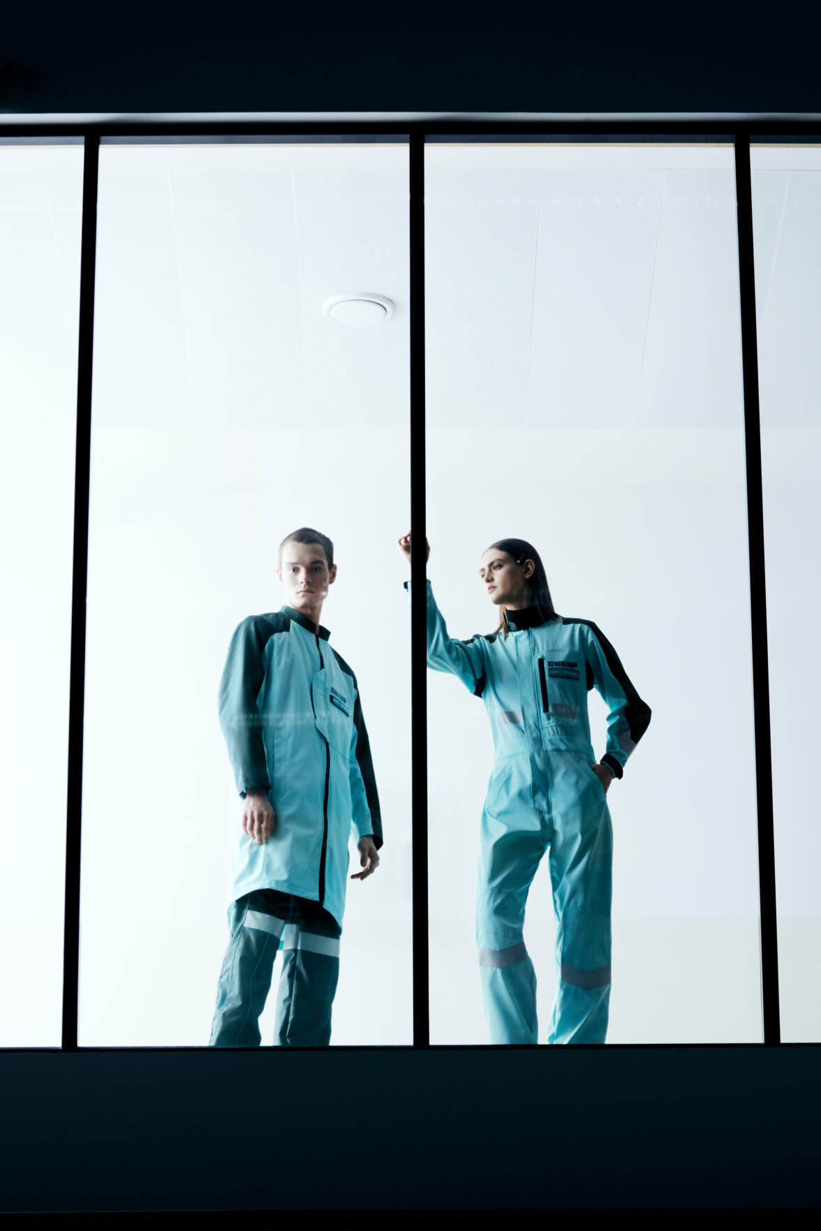 Технологическим партнером и консультантом проекта выступила студия HRLSN, работающая с передовыми технологиями 3D-моделирования и симуляции поведения тканей.Для коллекции выбраны передовые материалы и фурнитура и, помимо функциональности и безопасности, они несут идею преемственности, ведь создание инновационных синтетических материалов — повседневная работа учёных СИБУРа.