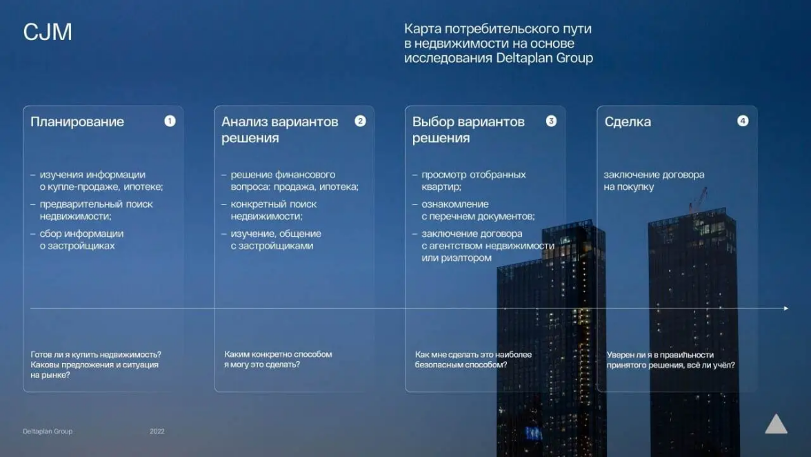 Проанализировав CJM, мы нашли элегантное решение. Да, агрегаторы предоставляют потребителю огромный выбор жилья на первом этапе. Но сделать конкретный выбор, перейти от изучения вариантов к покупке только через агрегаторы покупателю уже сложнее.