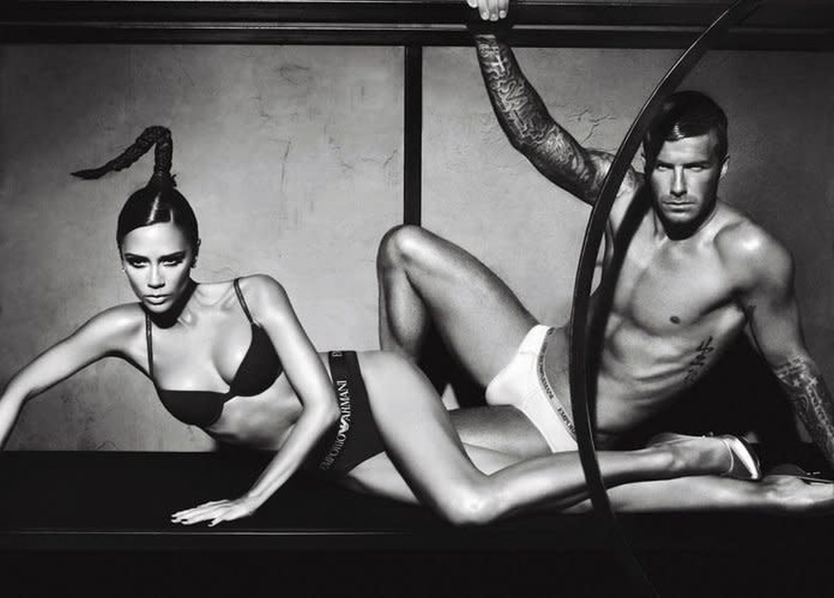 Одной из первых суперзвезд мирового футбола, снявшихся в рекламе нижнего белья, был Дэвид Бекхэм. На протяжении карьеры он появлялся в рекламе H&M, Calvin Klein и Armani. В 2009 году, спустя 10 лет после свадьбы, английский футболист и его жена Виктория предстали вместе в кампании #marriagegoals для нижнего белья Emporio Armani. В 2014 году в возрасте 39 лет завершил карьеру как модель для рекламы нижнего белья, а через год запустил свой бренд мужской одежды вместе с H&M.