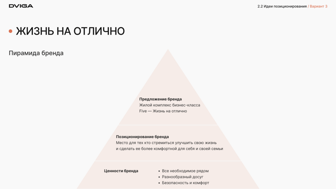 Цель этапа — на основе аналитической части и ее выводов, сформировать три идеи позиционирования для объекта.