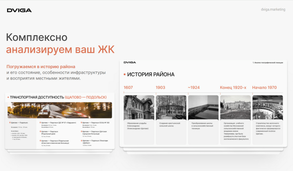 Кстати, если захотите узнать о том, зачем застройщикам маркетинг, что не так с рекламой недвижимости и как создать концепцию ЖК, в котором захотят жить все, то мы в DVIGA провели большое исследование маркетинга недвижимости в России.