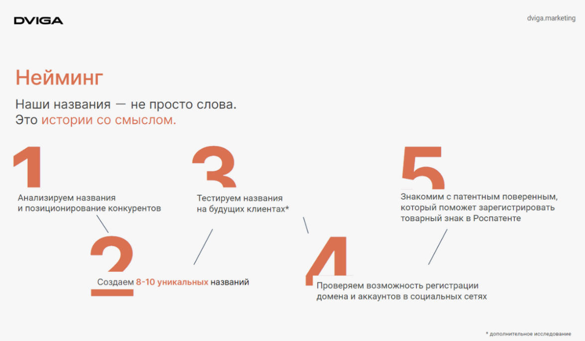 На самом деле, чтобы нейминг стал еще и важным маркетинговым инструментом, надо проделать огромную работу, которая включает в себя различные этапы исследования, аналитики и упаковки продукта.
