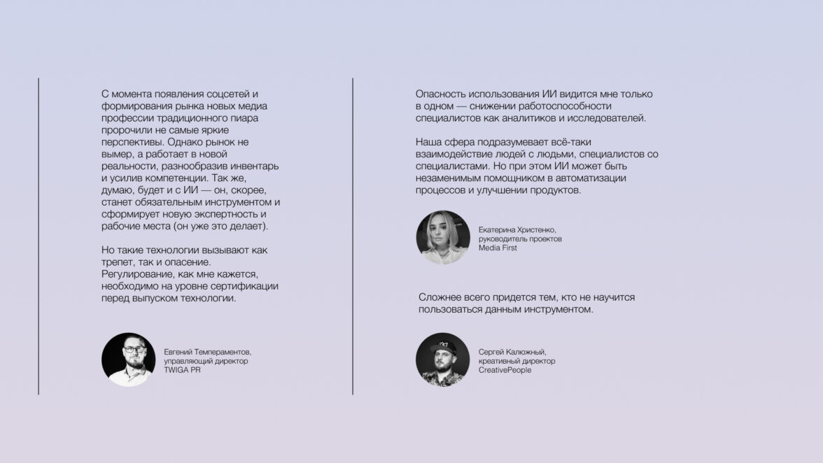 Заменят ли нейросети людей и их рабочие места? Нужно ли опасаться восстания машин и вводить жесткие ограничения или же ИИ — лучший друг? И что думают на этот счет специалисты диджитал-отрасли?
