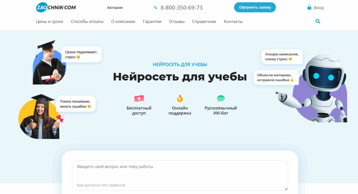 Zaochnik AI — нейросеть для создания бизнес-плана с интеграцией реальных источников для бизнес-стратегий.