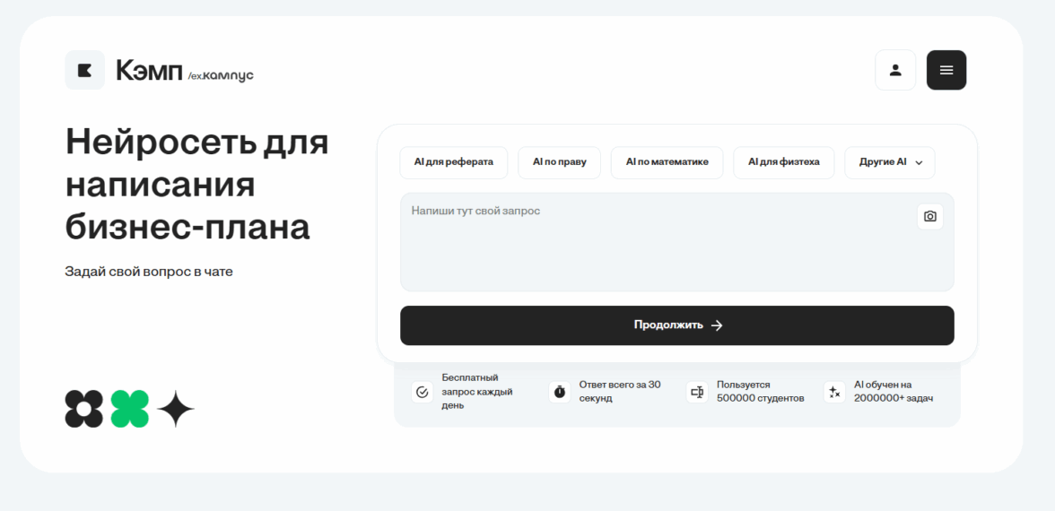 Study AI — нейросеть отличается быстрыми решениями задач и примерами для учебных или стартап-проектов.