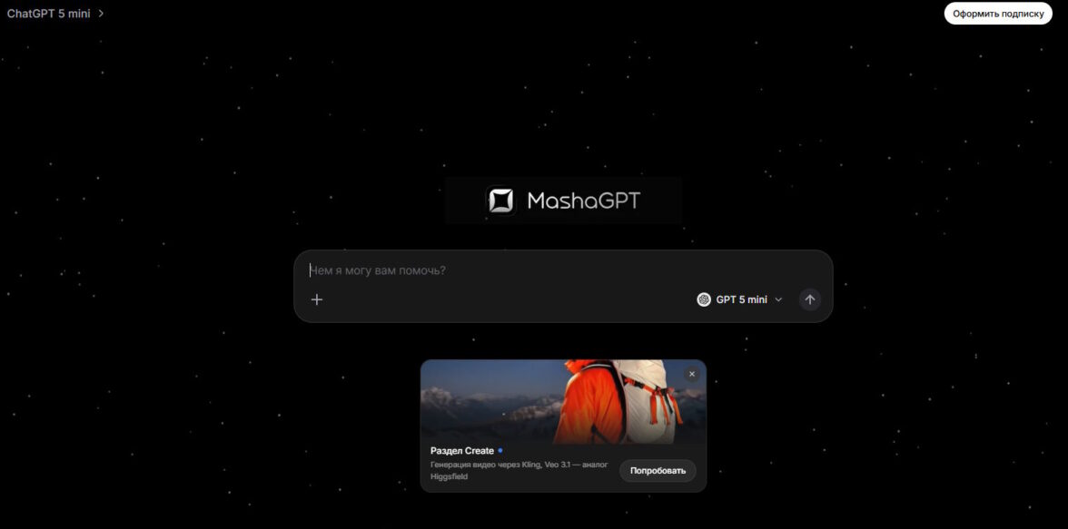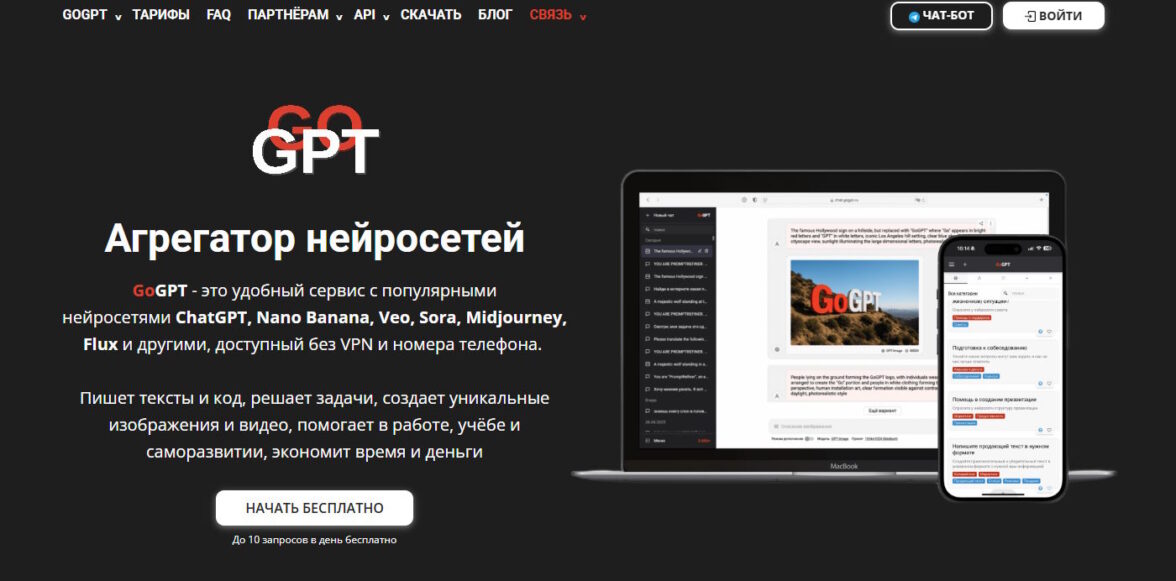 Агрегатор нейросетей, объединяющий ChatGPT, Claude, Midjourney, Flux и другие модели в едином интерфейсе. Сервис генерирует тексты, изображения, видео, код и анализирует файлы (PDF, YouTube) на русском языке для бизнеса, студентов и разработчиков.