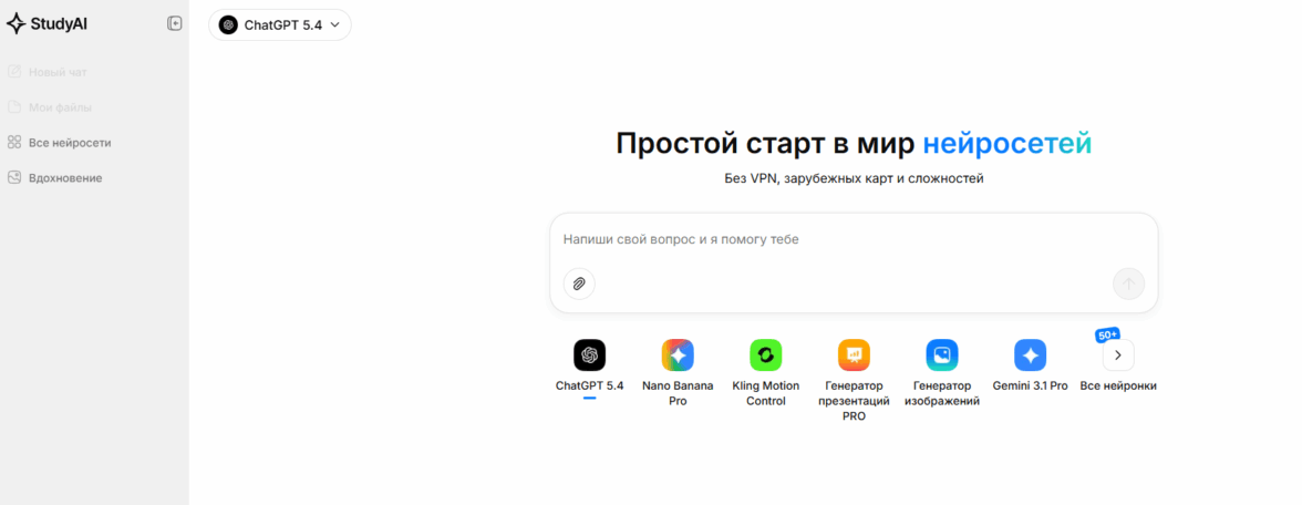 Сервис с нейросетями на все случаи жизни: он дает единый кабинет, где можно писать тексты, разбирать учебные задачи, генерировать изображения и видео, работать с кодом и документами.