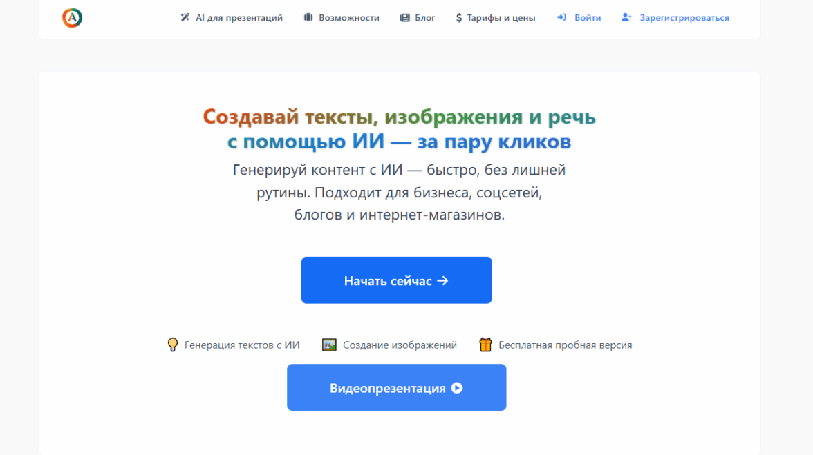 Хорошая бесплатная нейросеть для всего: она генерирует тексты, изображения, озвучку, видео и анализирует файлы на русском языке для учебы, маркетинга и бизнеса. Платформа упрощает работу с ИИ через единый интерфейс с ежедневными бесплатными лимитами и поддержкой загрузки документов.