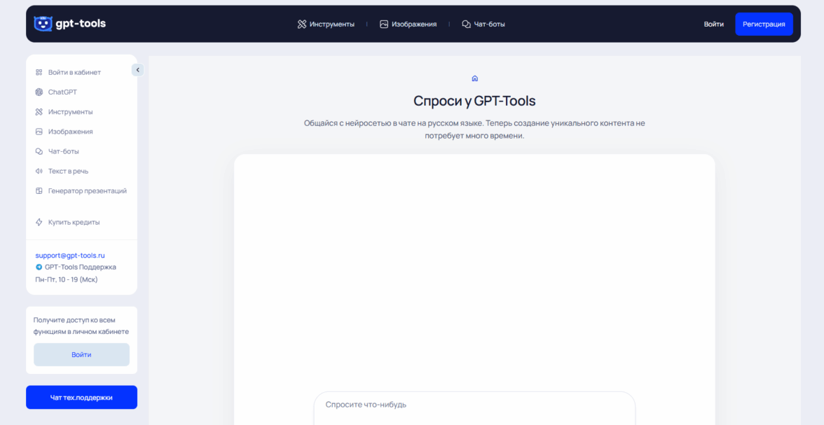 Российский агрегатор инструментов на базе нейросетей ChatGPT для генерации текстов и решения задач онлайн. Сервис предлагает чат-режим, шаблоны промптов, редактирование контента и специализированные функции вроде проверки орфографии.
