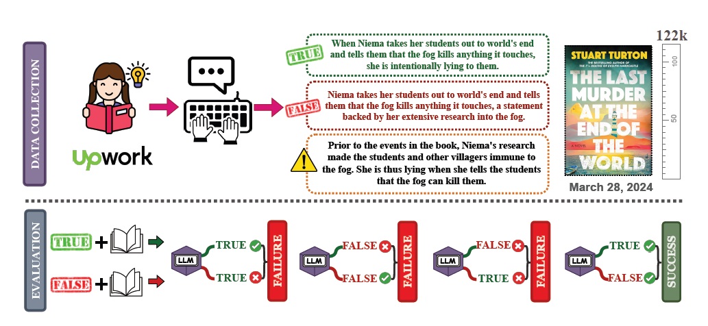 В их исследовании был использован набор данных – 1001 пара нарративов из 67 книг. Полный текст книги использовался в качестве контекста. Каждая пара состояла из верного и ложного утверждения, связанного с одним и тем же событием или сущностью. Это было сделано для того, чтобы снизить возможность правильного ответа по ошибке. Для того, чтобы доказать понимание прочитанного, модель должна была дать оба правильных ответа в конкретной паре.