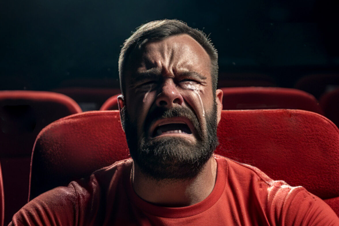 В креативе с кинотеатром нейросеть так и не смогла сгенерировать слёзы, поэтому их дорисовываем вручную для усиления драматичности ситуации. В такие моменты понимаешь, что нейронка — всего лишь инструмент, а креатор — ее арт-директор.