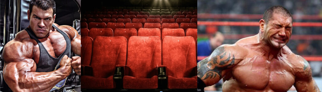 Начнем работу над креативом также с поиска референсов. Нам нужны бодибилдеры и определенный ракурс в кинотеатре. Эмоцию плачущего человека искать как правило можно, но необязательно, так как нейросеть сегодня неплохо воспроизводит необходимую мимику по запросу.