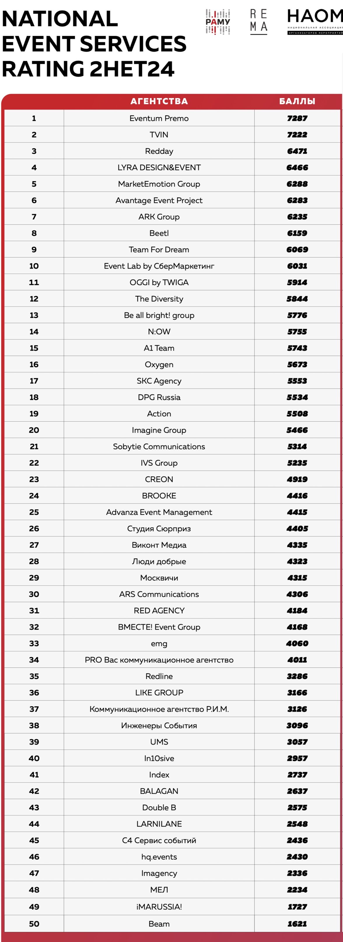 В рейтинге приняли участие event-агентства полного цикла. Верификационная комиссия оценивает показатели по двум блокам: «Бизнес» и «Экспертиза». В блоке «Бизнес» оцениваются размер штата, услуги и кейсы, оборот и дополнительные показатели финансовой устойчивости.