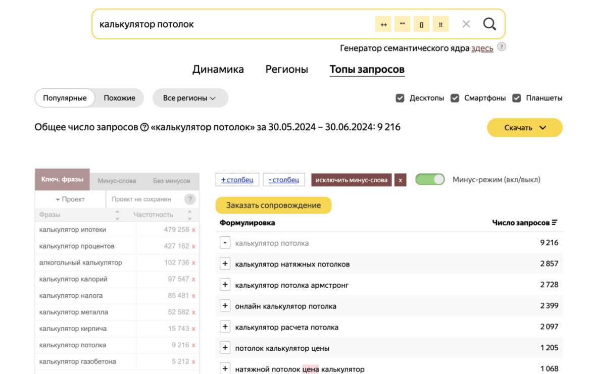 Изучите аудиторию. Определите наиболее часто задаваемые вопросы, используя данные из службы поддержки или отдела продаж, собственных социальных сетей и форумов по теме. Не забудьте и про SEOшный подход с Yandex.Wordstat и следующими операторами: