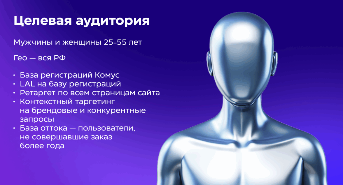 Таргетировались на одинаковую аудиторию, чтобы тесты были достоверными.