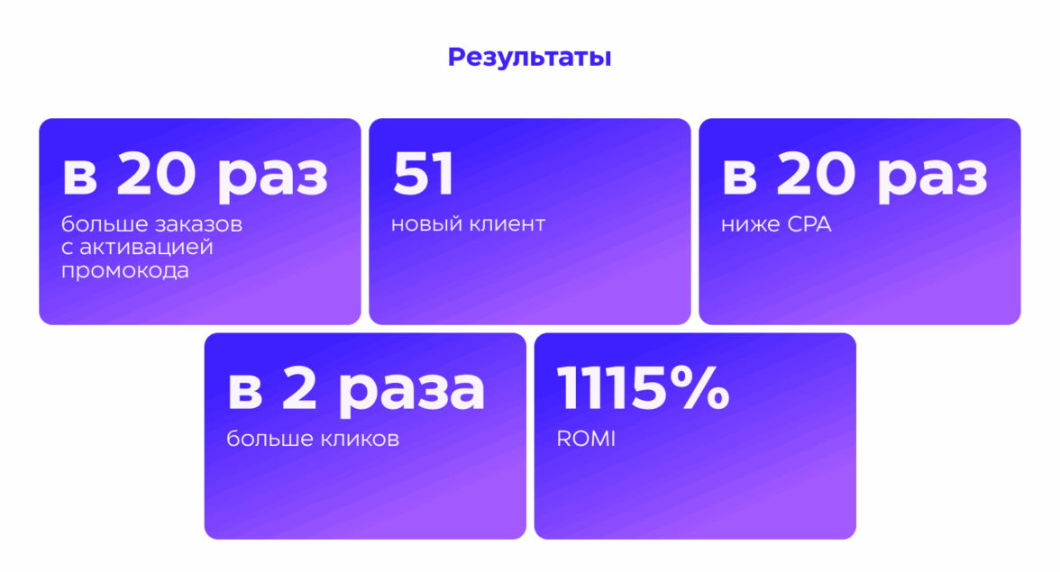 В креативах планировали использовать промокод, поэтому эффективность размещения оценивали через количество его активаций.