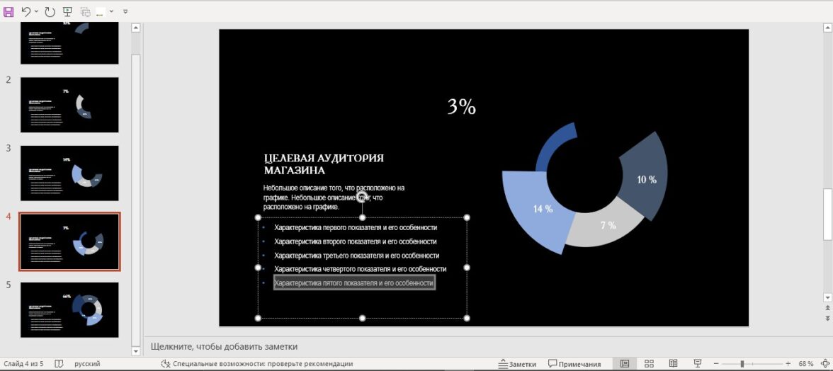 14. На финальный слайд добавляем полное описание к графику с описанием каждого сектора диаграммы.