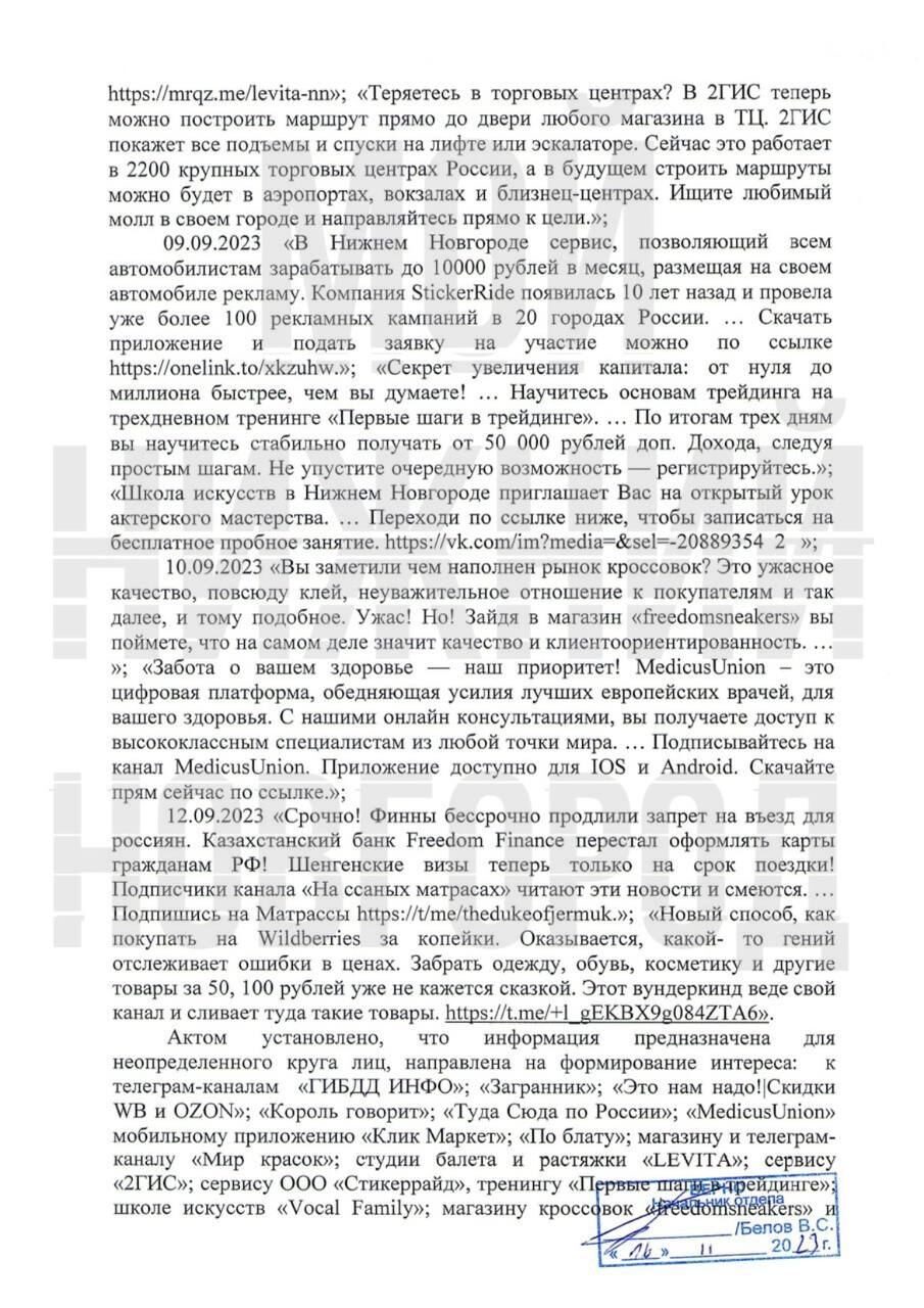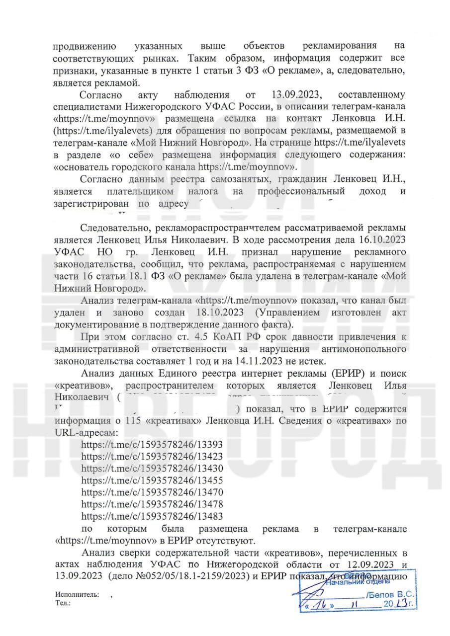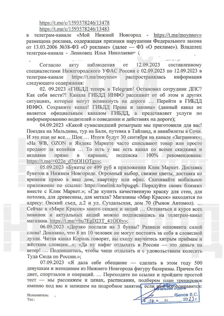 Как и предполагалось, после ФАС против паблика Мой Нижний Новгород (нижегородский кейс) возбудило дело Роскомнадзор по административному протоколу в связи с отсутствием маркировки рекламы (erid) и отчетности в ОРД, где штрафы для участников рекламной цепочки будут более существенные.