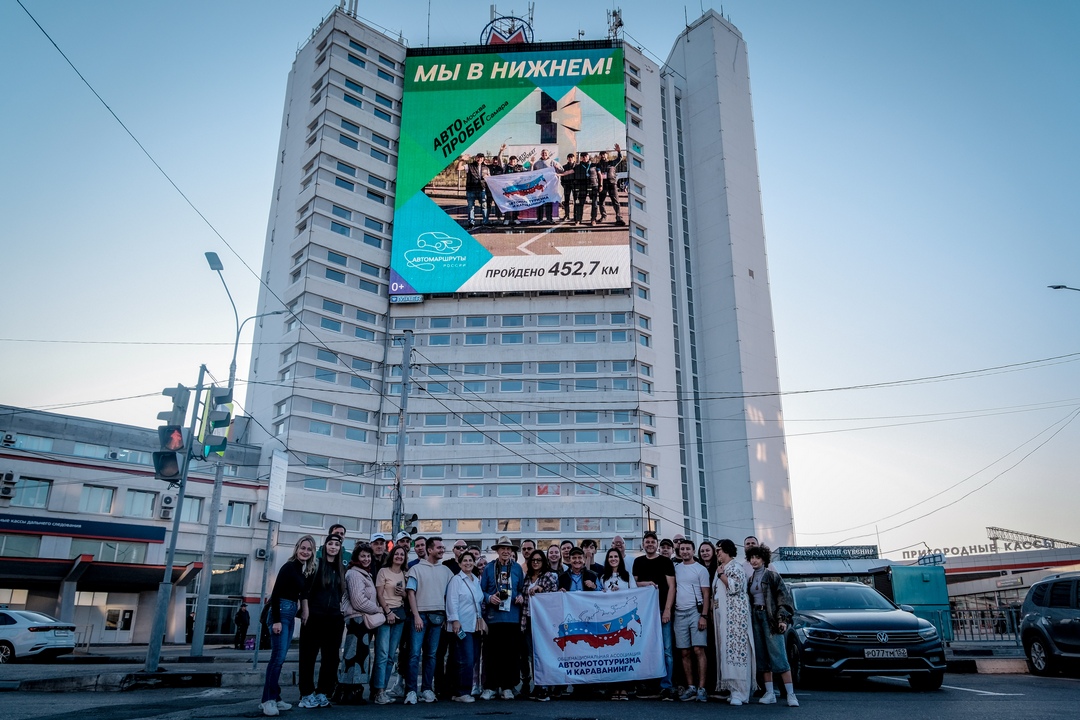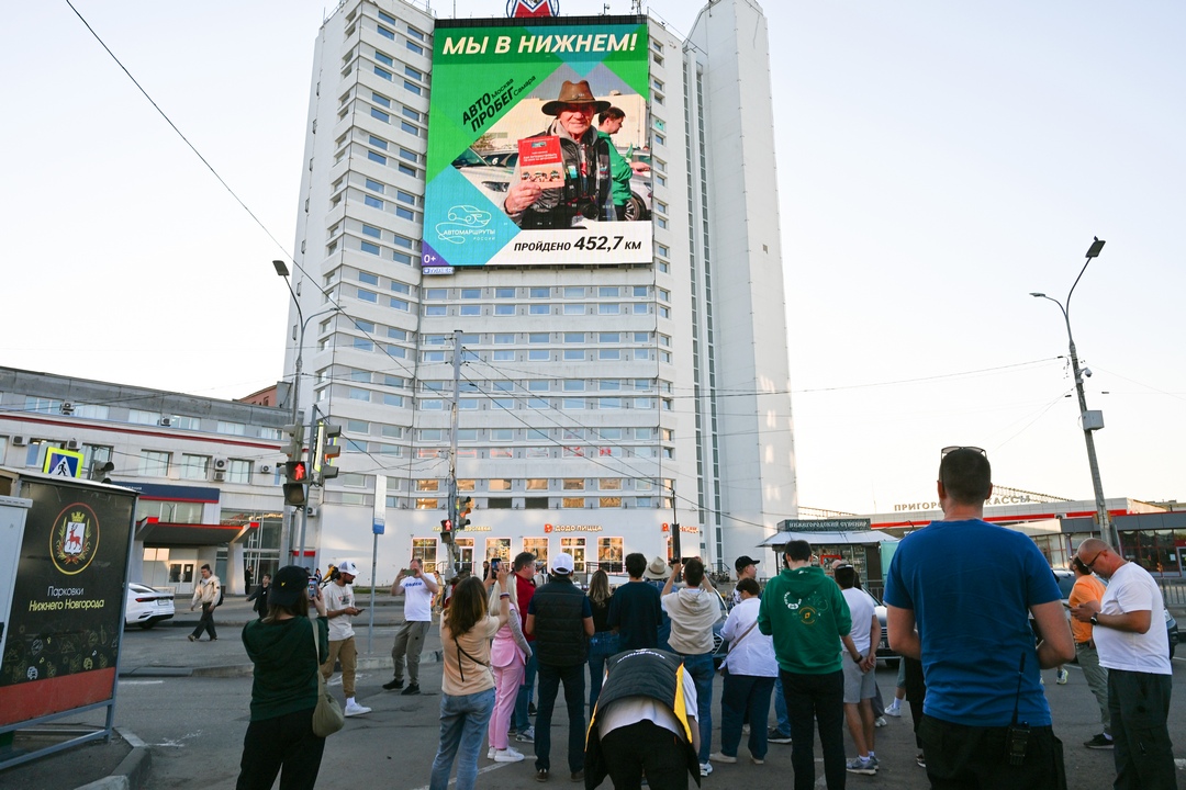 В Нижнем Новгороде участников встретил крупнейший медиафасад города с ярким приветствием. Это стало символичным началом серии городских встреч, которые будут сопровождать автопробег на всём маршруте.