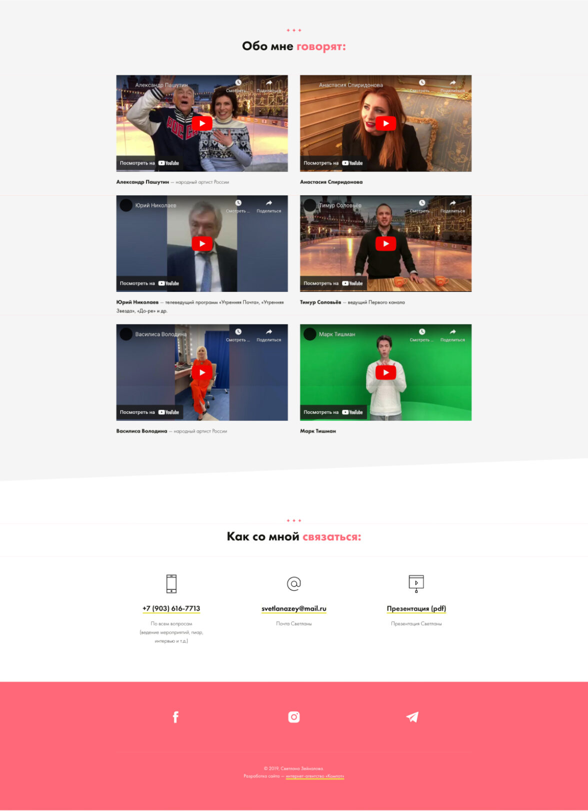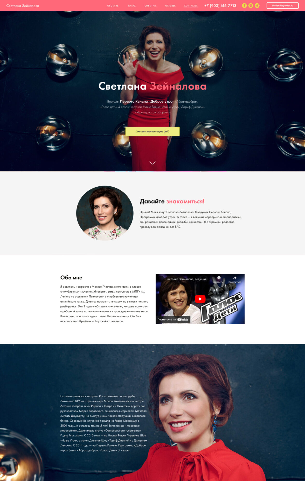Разработать сайт и презентацию ведущей Первого Канала Светланы Зейналовой