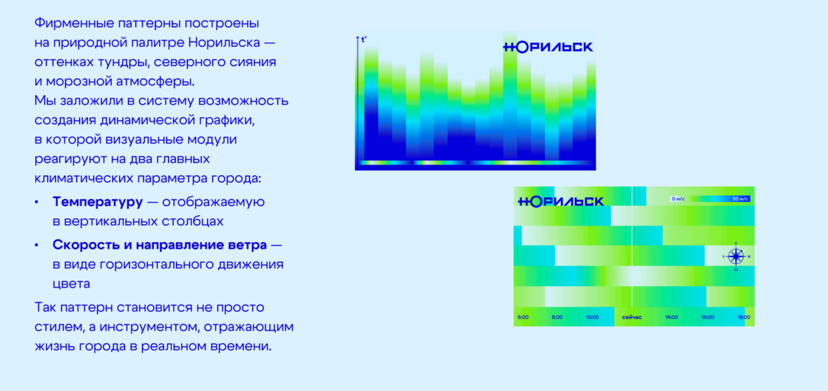 Цветовая схема собрана из природных ориентиров региона: оттенков тундры, северного сияния и вечной мерзлоты.