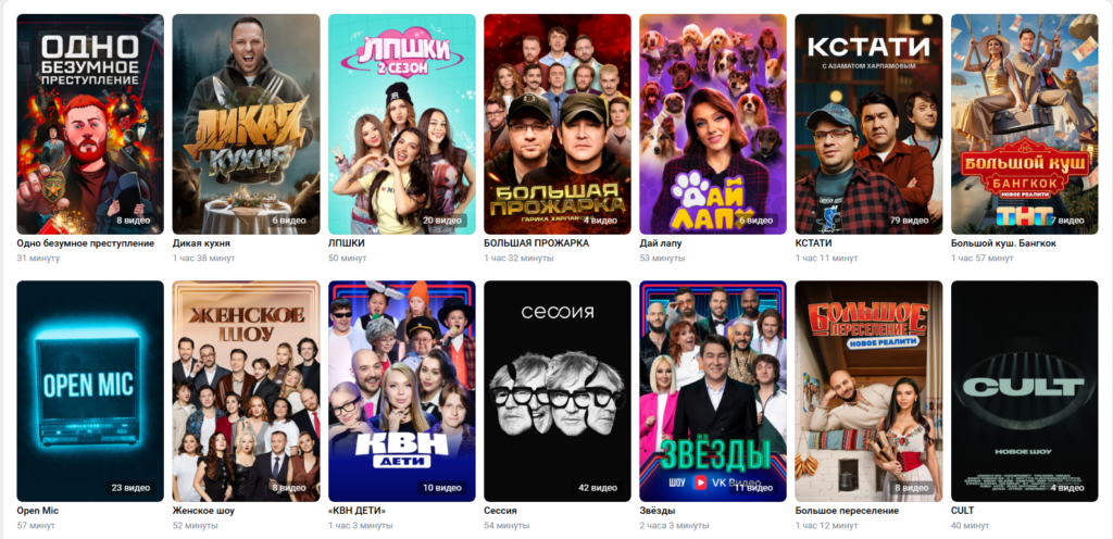 Раздел с шоу в VK Видео