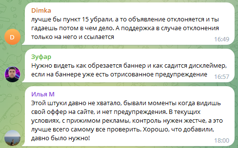 В текстовые объявления некоторых тематик автоматически добавляются предупреждения