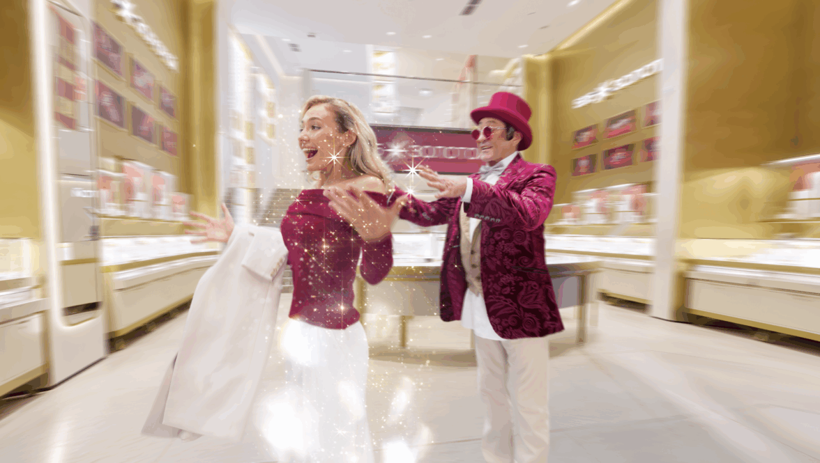 Для создания финальной сцены команда продакшена ездила в Санкт-Петербург, чтобы провести съемки в новом флагманском магазине «585 Золотой». В дальнейшем реальные кадры магазина были спроектированы и воссозданы в графике.