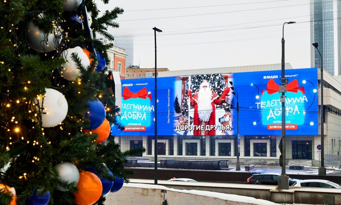 Мы запускаем новогоднюю акцию совместно с нашими друзьями — проектом «Доброшрифт», любой житель России может поздравить коллег, друзей, родных, отправив «Новогоднюю телеграмму добра». Под этот проект мы выдели рекордное количество эфирного времени, анонс и сами поздравления, и праздничные пожелания увидят свыше 10 миллионов раз жители Москвы, Владивостока, Воронежа, Краснодара, Нижнего Новгорода, Оренбурга и Кемерово, других крупных городов. Всего цифровые новогодние телеграммы получат порядка трех миллионов человек. Присоединяйтесь, делитесь добром друг с другом!