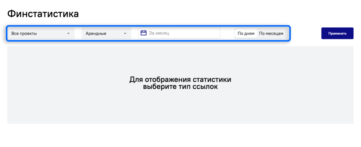 Даты — период, за который отобразятся траты по проекту на закупку ссылок выбранного типа.