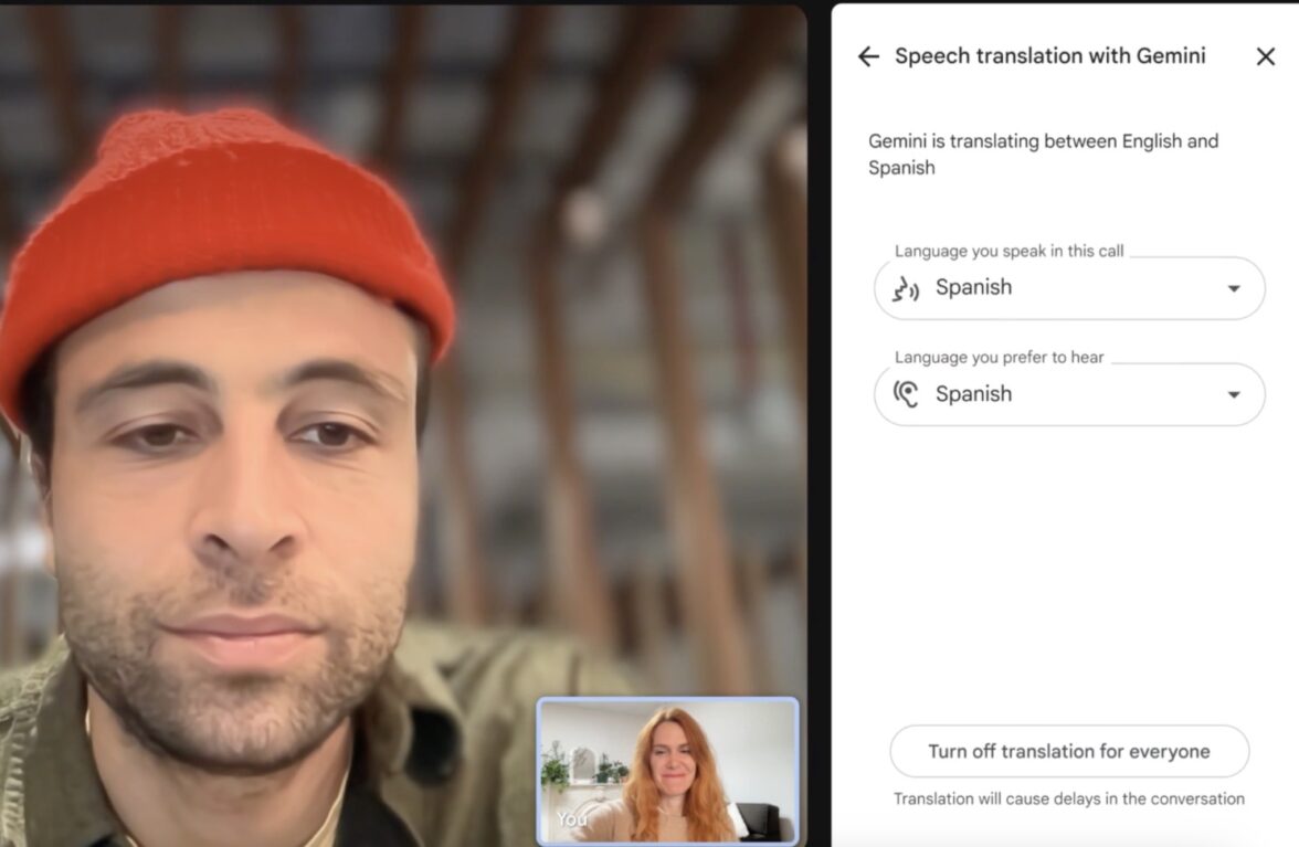В сервисе видеосвязи и видеоконференций Google Meet появится новая функция, которая будет переводить речь пользователя на предпочтительный язык собеседника практически в режиме реального времени. Функция пока поддерживает только английский и испанский языки и доступна в бета-версии для подписчиков Google AI Pro и Ultra.