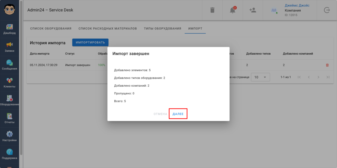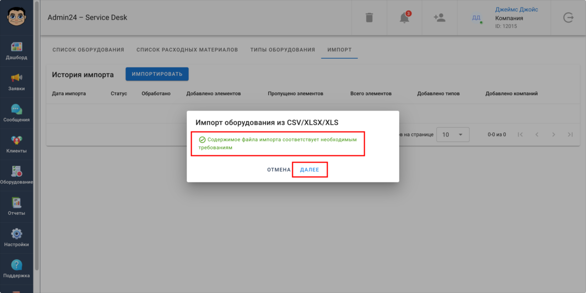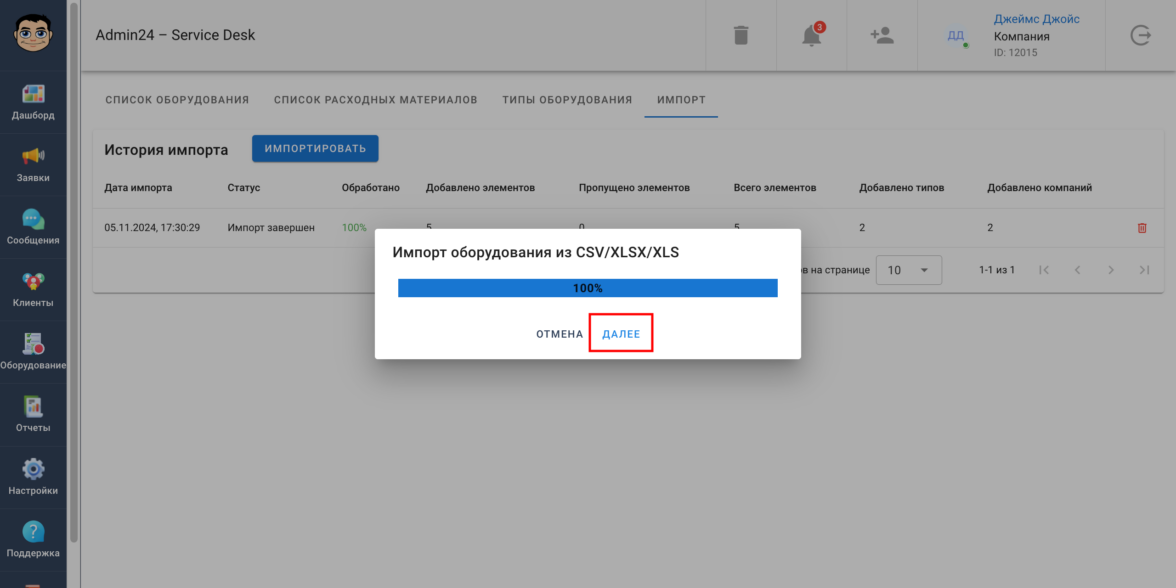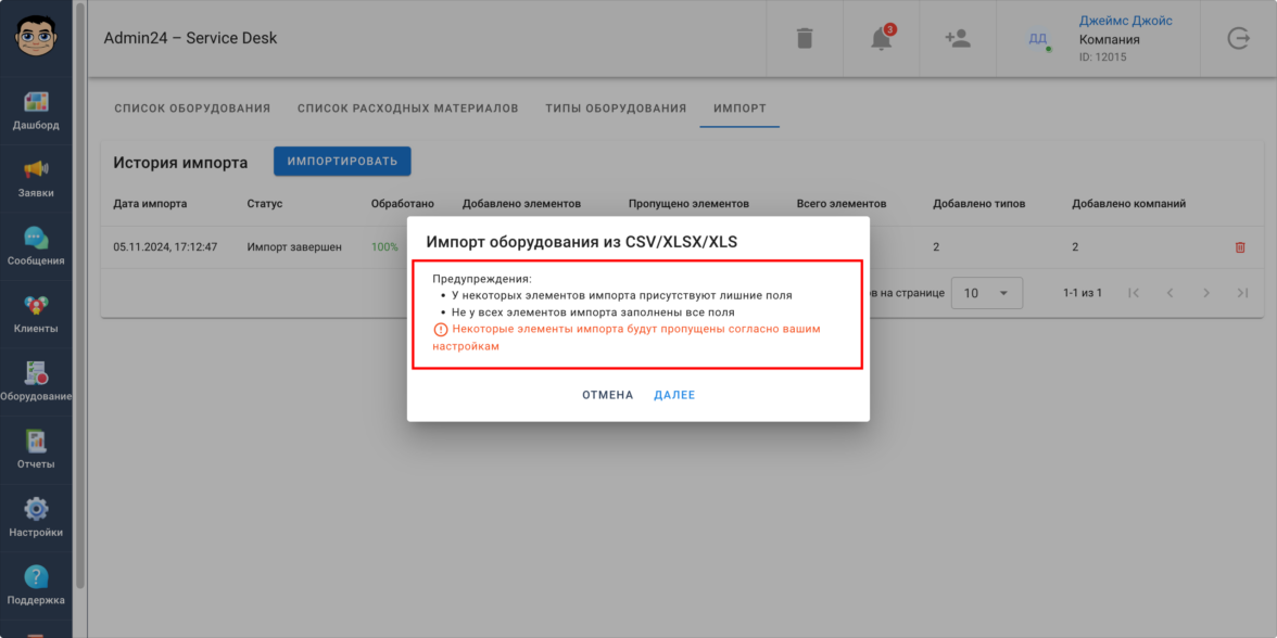 Новые возможности импорта оборудования и работы с заявками в Admin24