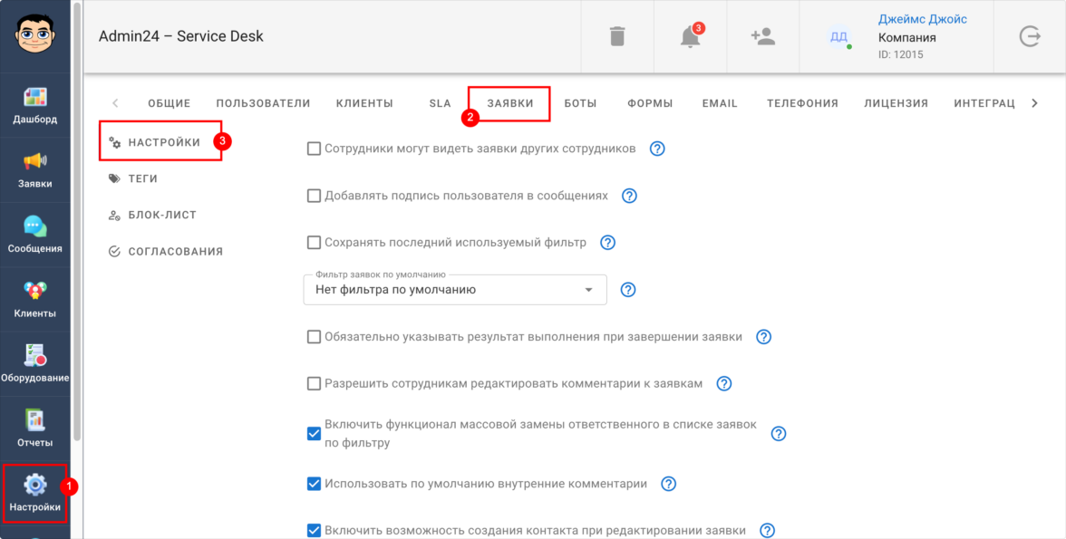 Чтобы включить эту функцию, перейдите в раздел «Настройки» → «Заявки».