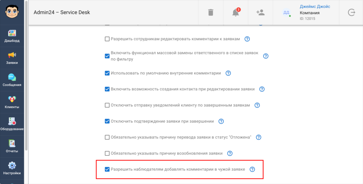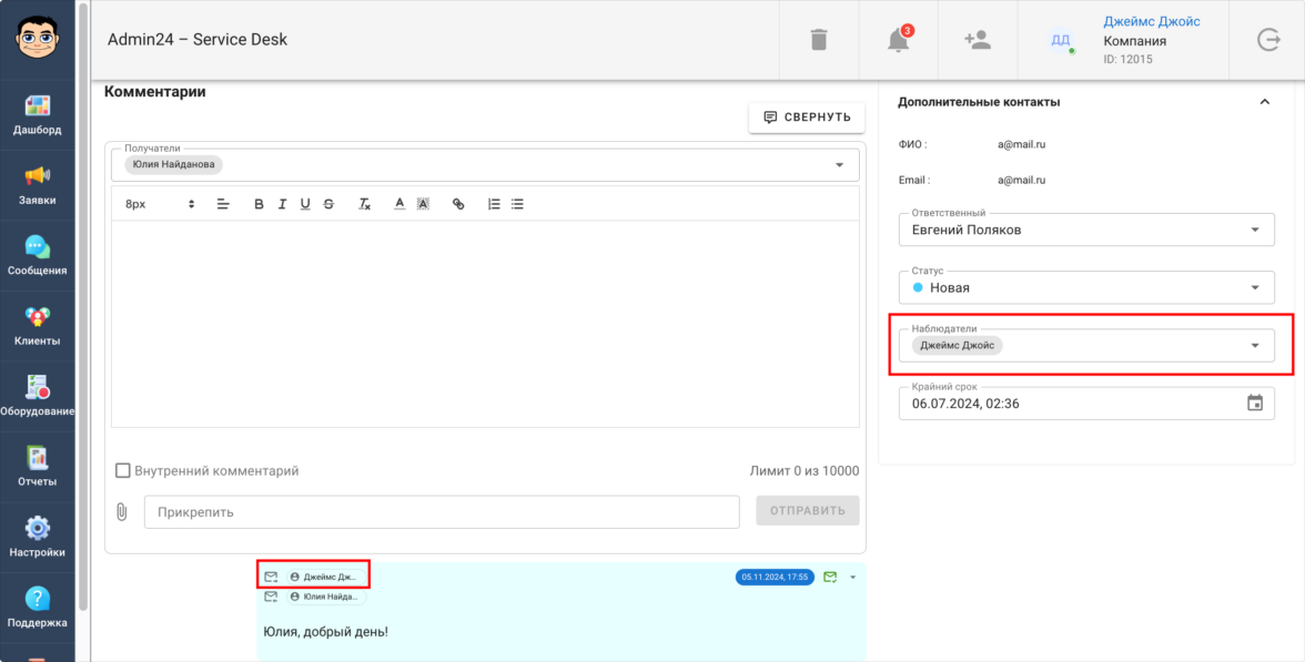 Теперь в сервис-деске есть функция, при активации которой оставлять комментарии в задачах смогут не только ответственные сотрудники, но также и наблюдатели.