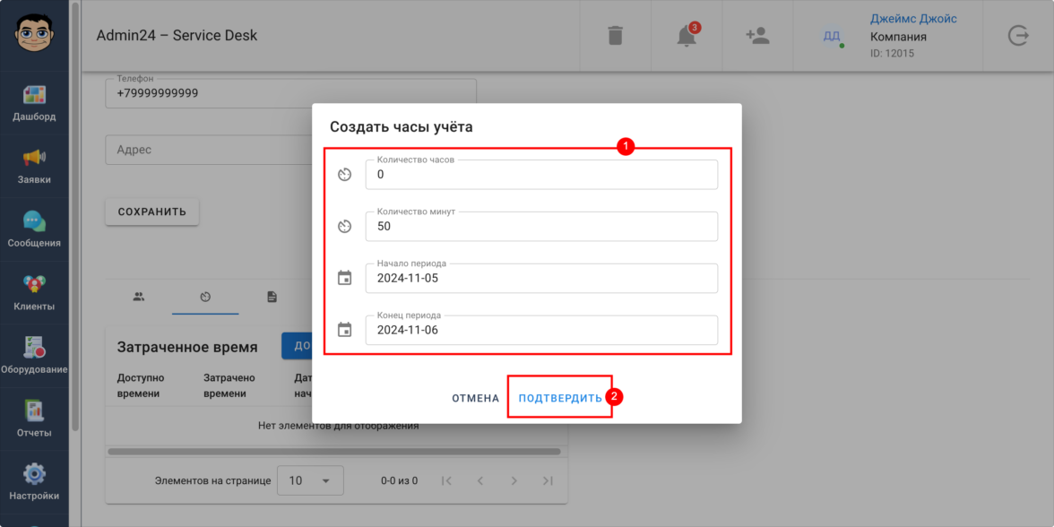 Теперь при настройке затраченного времени у компании-клиента, помимо часов, можно указывать минуты.