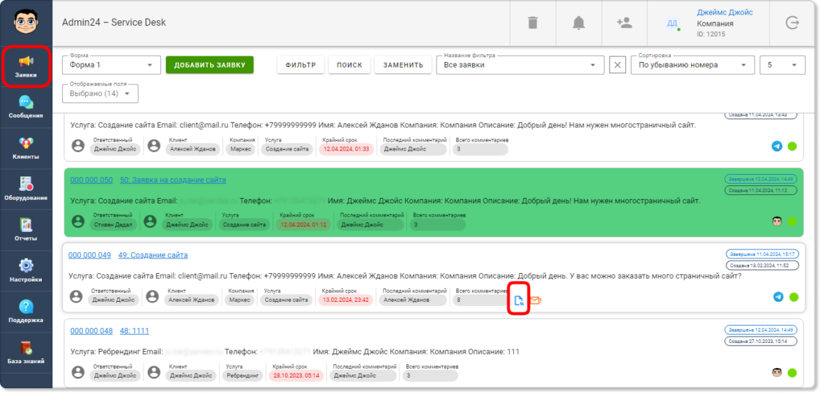 В списке заявок появился индикатор обращений с прикрепленными файлами