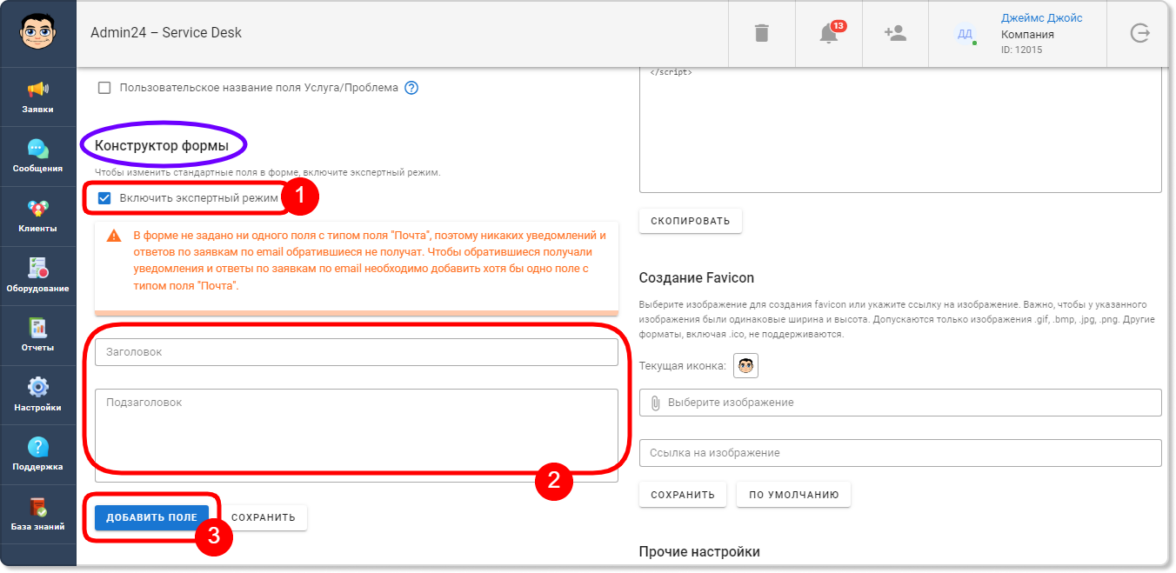В открывшемся окне перейдите к блоку «Конструктор формы». Если у вас не включен экспертный режим, активируйте его, поставив галочку рядом с полем «Включить экспертный режим».