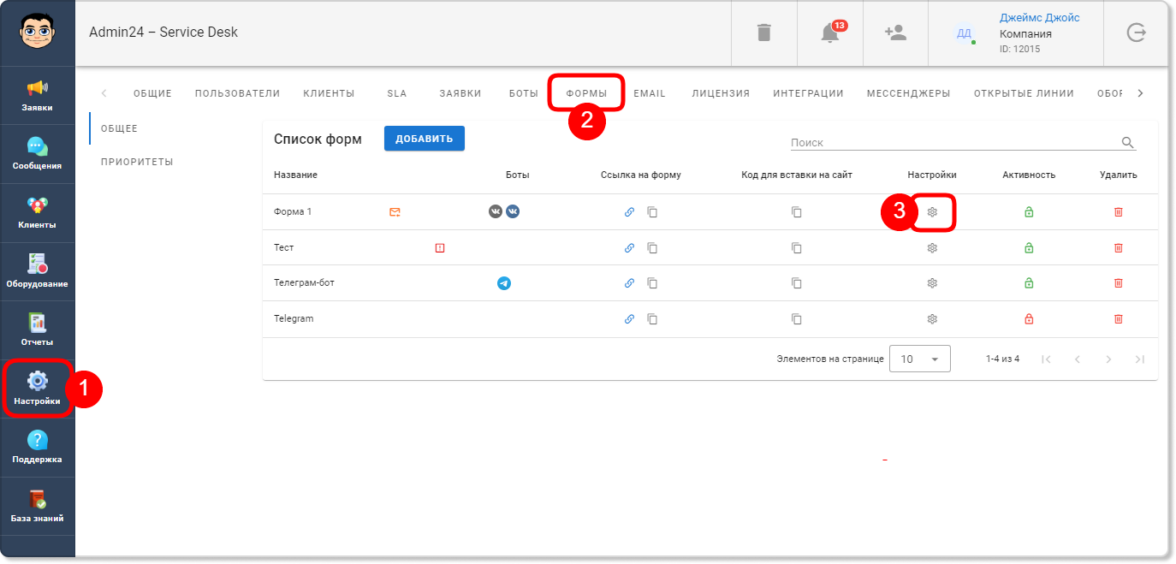 Чтобы воспользоваться функцией, перейдите в «Настройки» → «Формы» и нажмите на шестеренку напротив нужной формы.