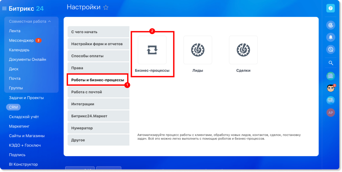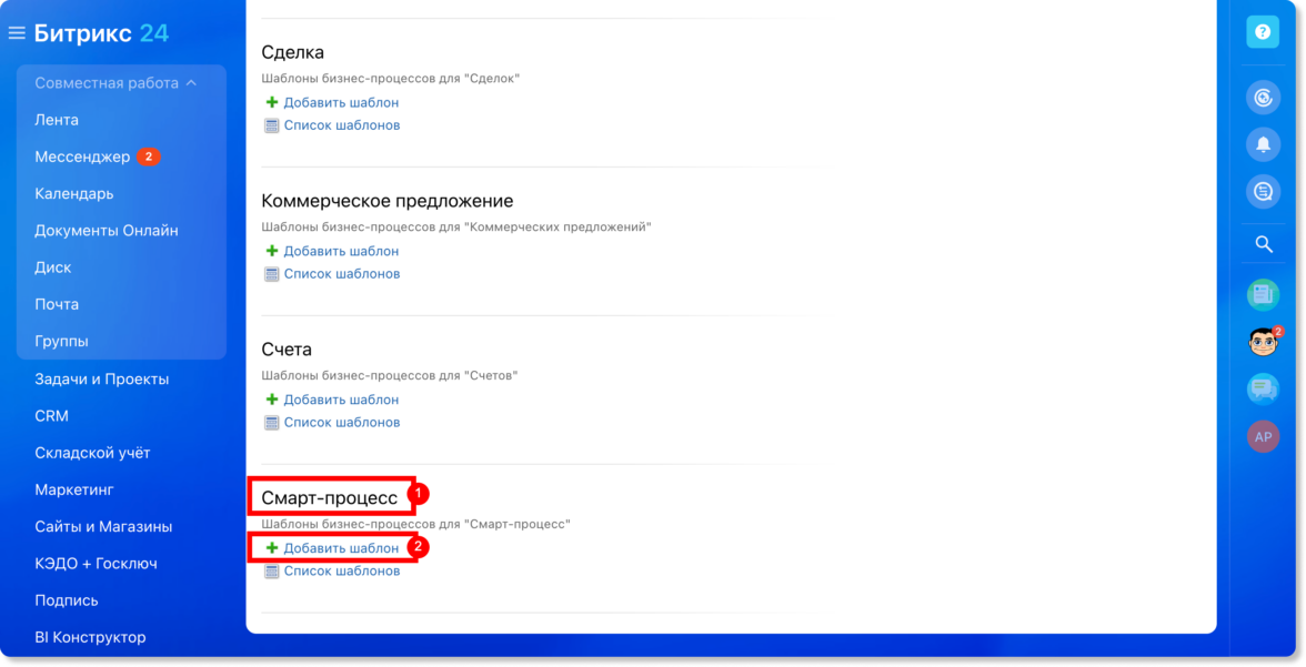 Добавлена возможность настраивать для смарт-процессов бизнес-процессы, отправляющие сообщения в мессенджерах