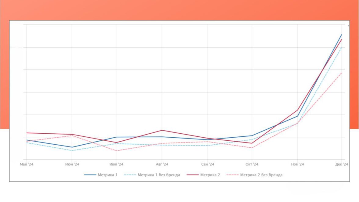 Положительная динамика сохраняется. Так, в январе 2025 г. продолжился рост суммарного небрендового трафика. И по завершении «горячего сезона» показатели остаются выше прошлогодних.