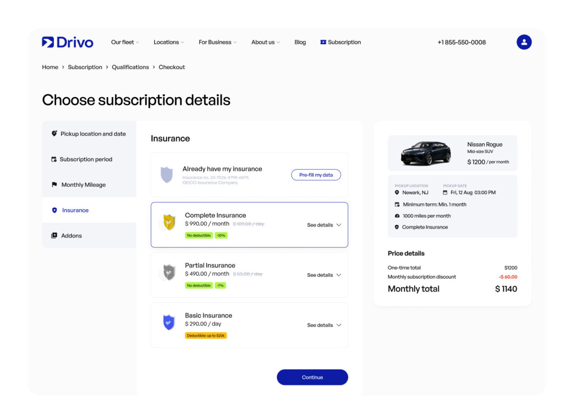 Drivo — популярный сервис аренды автомобилей в Нью-Йорке. Мы долго сотрудничаем с брендом, выполнив ранее полномасштабный редизайн и запустив рекламные кампании. Следующим этапом развития проекта стала задача совершенствования UX/UI-дизайна платформы.