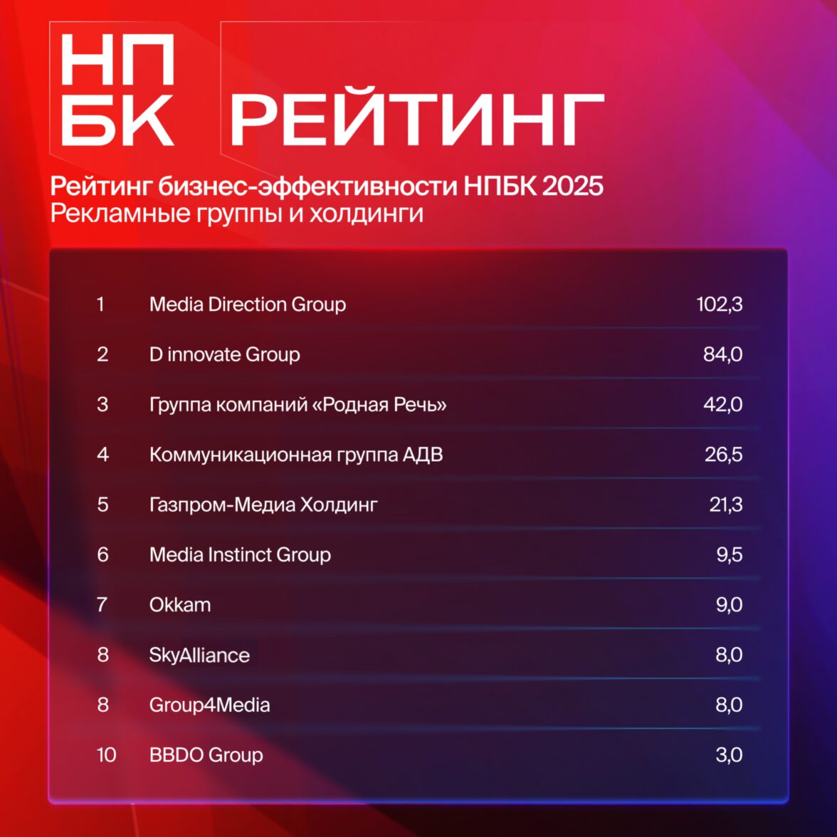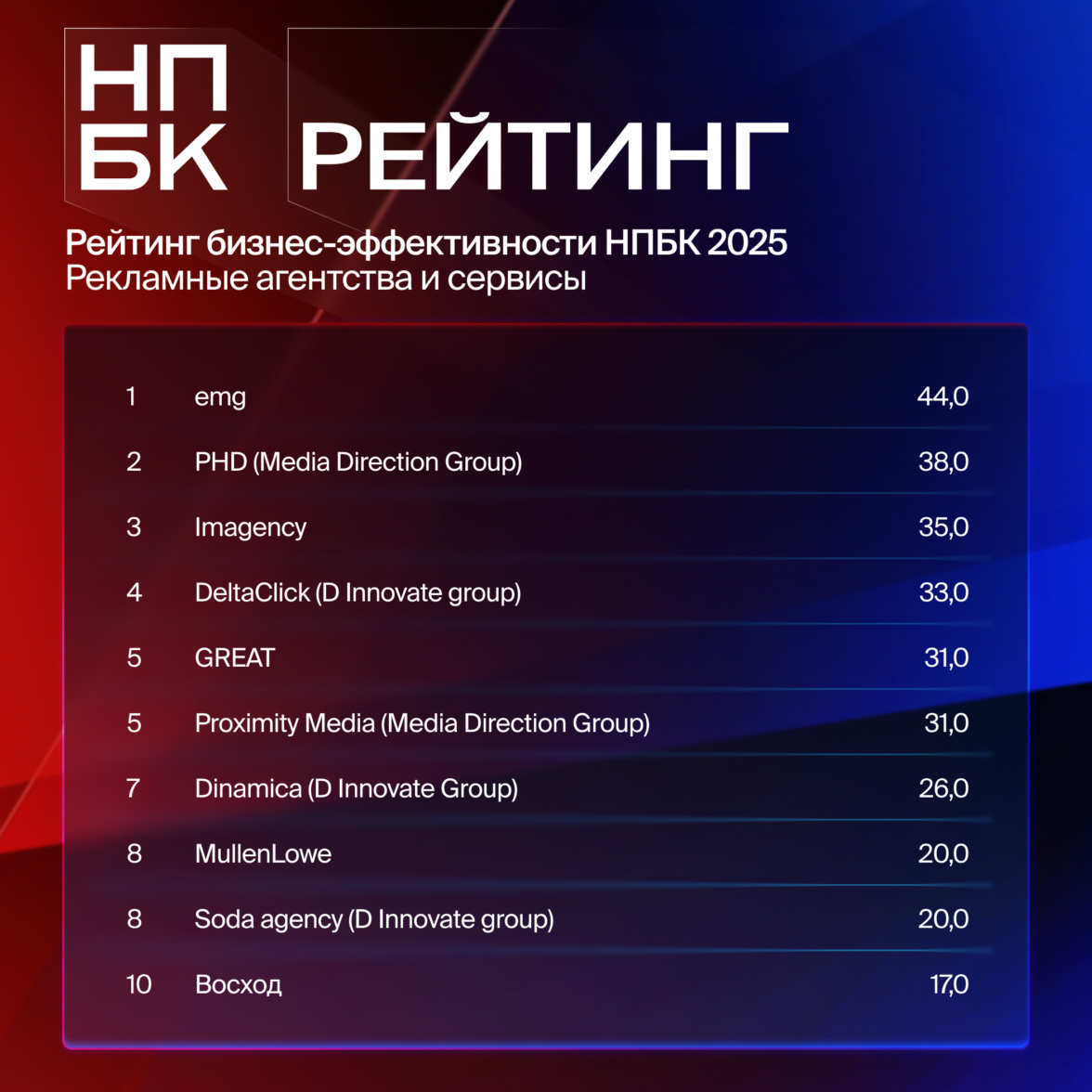 Рейтинг НПБК — это зафиксированная картина эффективности, основанная исключительно на данных. Он показывает не просто «громкие» компании, а тех, кто в течение сезона обеспечивал измеримый результат — через кейсы, оценённые профессионалами. Это важно и для самих участников, и для рынка в целом.