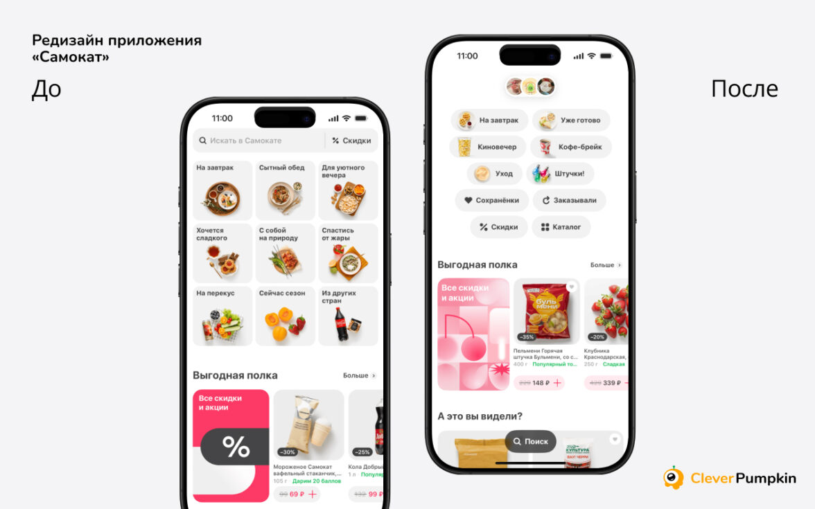 Мы в CleverPumpkin подходим к этому системно — изучаем, тестируем, предлагаем идеи. Поэтому, если вы ищете не просто дизайнеров, а команду, которая думает о метриках, пользователях и вашем бизнесе — будем рады обсудить ваш кейс. Проведём аудит, предложим сценарии развития и вместе выберем формат редизайна, который даст результат.