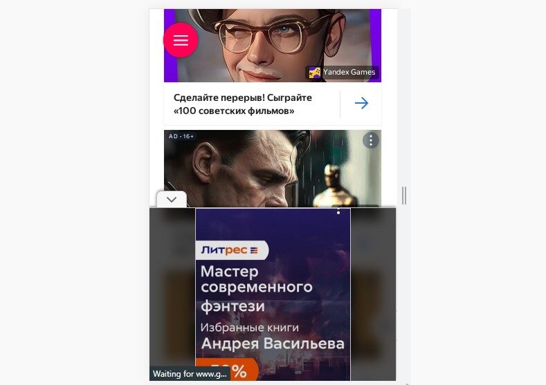 Если развернуть блок тематического контента и скроллить страницу далее, то можно увидеть аналогичные рекламные форматы.