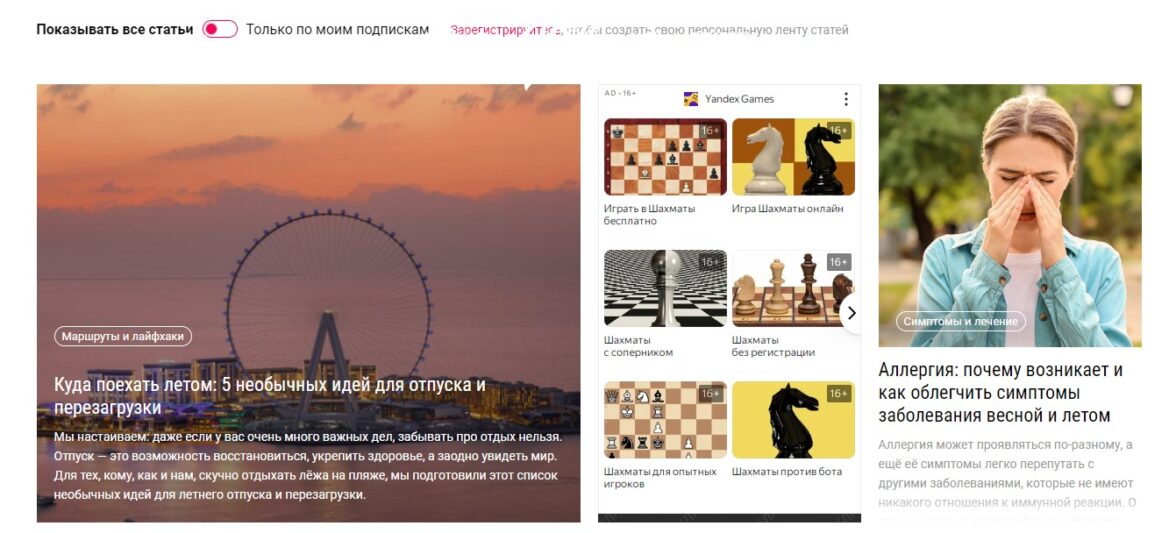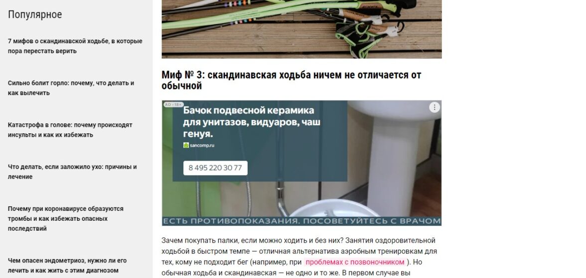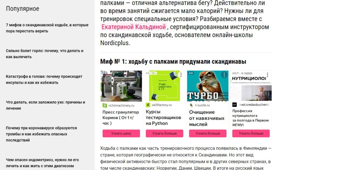 Если развернуть блок тематического контента и скроллить страницу далее, то можно увидеть аналогичные рекламные форматы.