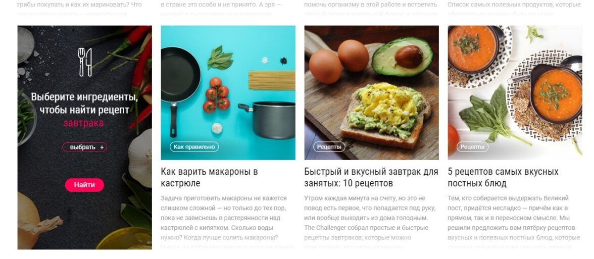 В дальнейшем весь контент статьи перемежается подобными горизонтальными форматами до самого конца страницы.