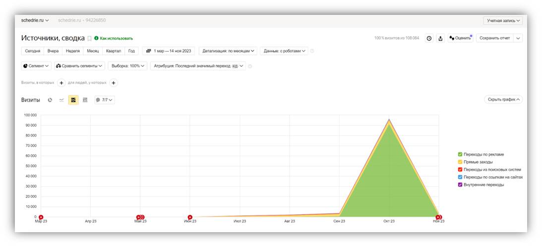 Видео привело 191 визит на сайт schedrie.ru, при том, что вся активность сосредотачивались именно на лендинге: