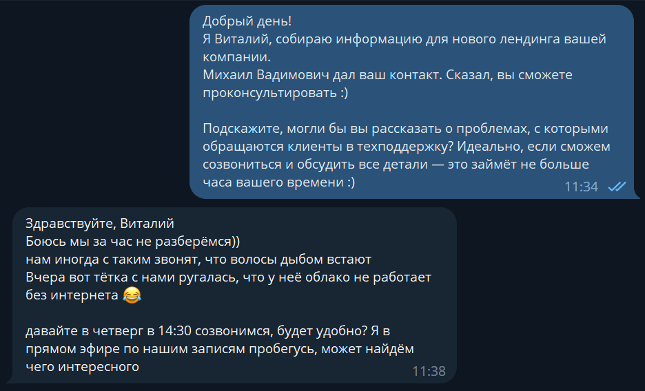 Переслушайте созвоны и перечитайте переписки. Доступы к ним можно получить через продажников, аккаунт-менеджеров и техподдержку. Хорошо, если вам дадут пароль к рабочему аккаунту, чтобы всё можно было просмотреть самому. Идеально — получить доступ к CRM. Так можно не просто почерпнуть убедительные аргументы, но и увидеть, к каким результатам привёл разговор.