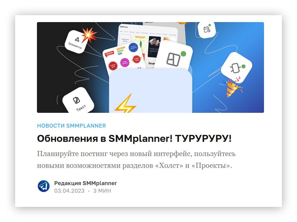 В блоге SMMplanner для каждого пакета обновлений сервиса готовят отдельную статью
